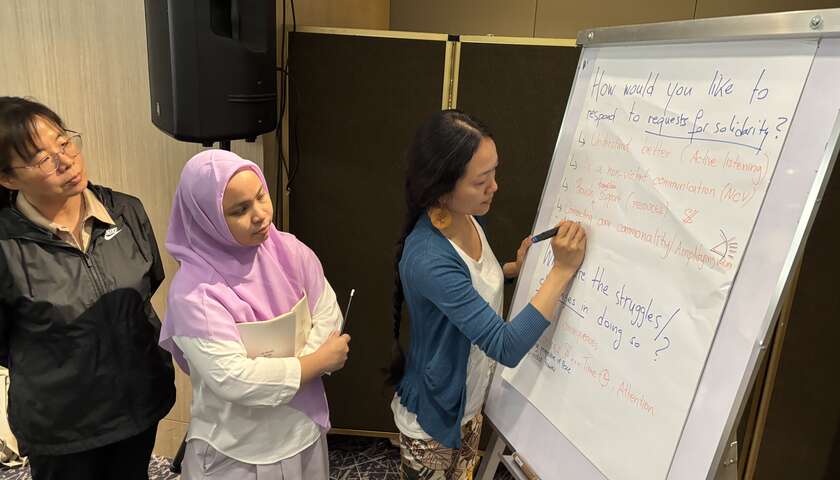 Während zwei intensiven Tagen erkundeten 17 Friedensaktivist:innen aus 10 Ländern Asiens die verschiedenen Rollen, die Frauen in der Friedensförderung einnehmen. Für die Teilnehmer:innen war das Treffen in der philippinischen Hauptstadt Manila eine seltene «Auszeit», um ihre Arbeit zu reflektieren, neue Sichtweisen kennenzulernen und die Solidarität über die Grenzen hinweg aufzubauen. Wir diskutierten auch, welchen Mehrwert unser Netzwerk Feminists Connecting for Peace bieten kann, um daraus Erkenntnisse für weitere Netzwerk- und Advocacy-Aktivitäten zu gewinnen.